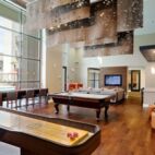 Located in the heart of downtown San Jose, our clubhouse offers the perfect setting for meetings, team events, and presentations. The versatile space comfortably accommodates groups of up to 40 people and features a full kitchenette, breakout areas, and a relaxing pool view. INCLUDED IN YOUR BOOKING: -Seating for up to 36 guests -Conference table -Additional open seating areas -Pool view -Shuffleboard -Pool table -Wi-Fi -Kitchenette with sink -Restrooms (located in the fitness center next door) There is no access to TVs inside the space, and there is no parking onsite for hosts and guests. All guests and hosts will need to utilize public parking in the downtown San Jose area, or arrive via VTA. We require event insurance for all productions and all meetings of over 30 people. Please note that all set up and breakdown time should be included in your reservation time. Furniture should not be relocated. No nails, screws, staples, or penetrating items should be used on the walls. Any tape or gummed backing materials must be completely removed.